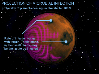 We have been able to modify your computer display to show a simulated growth pattern for the microbe. Be watchful for any sign of it. At this point we know of no way to prevent its growth.